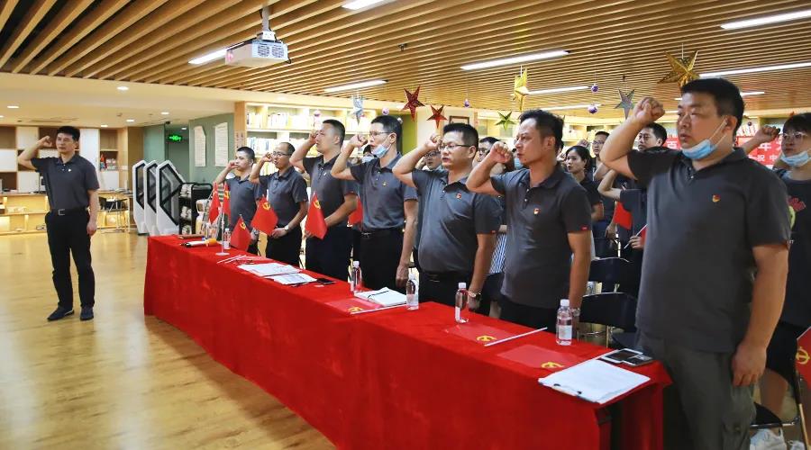 在鲜红的党旗下,全体党员同志举起右拳,神情坚毅,面向党旗庄严宣誓。“我志愿加入中国共产党……”铿锵有力的入党誓言,让在场党员同志重温入党时作出的庄严承诺,坚定理想信念,做对党忠诚、对人民尽责的合格党员。